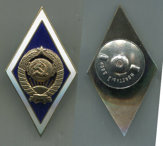 Серебряный нагрудный знак выпускника Государственного университета СССР (15 лент в гербе)