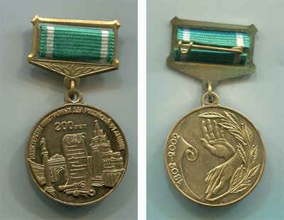 Юбилейный знак "200 лет Министерству Иностранных Дел РФ"