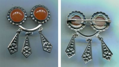 Старинная брошь из серебра 875 пробы,вставка из янтаря. Рижский ювелирный завод