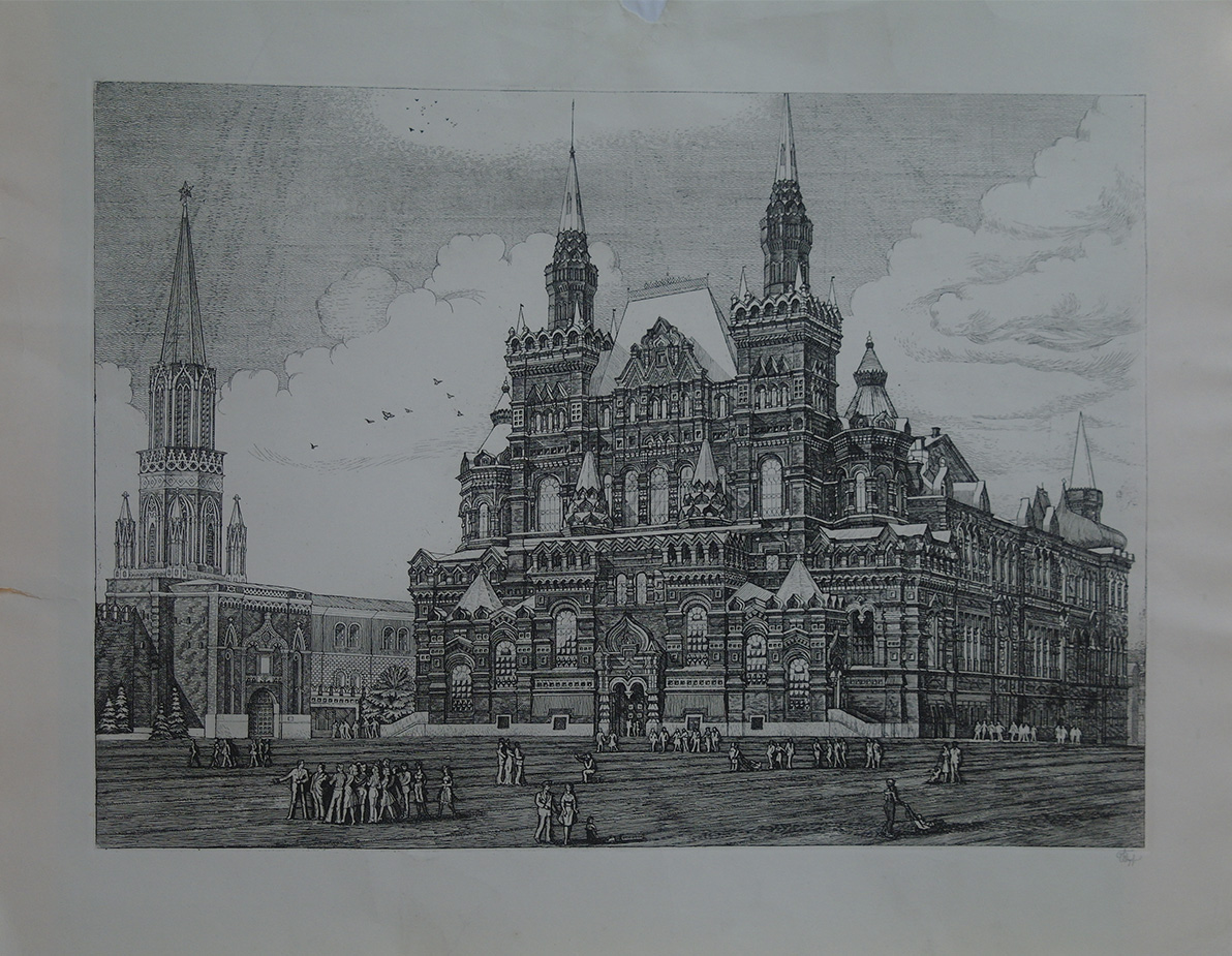 Офорт "Государственный Исторический музей". Художник Гусев В.А.