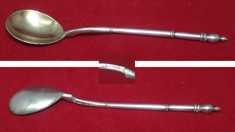Антиквариат кофейная ложка, серебро 84 проба, Российская Империя