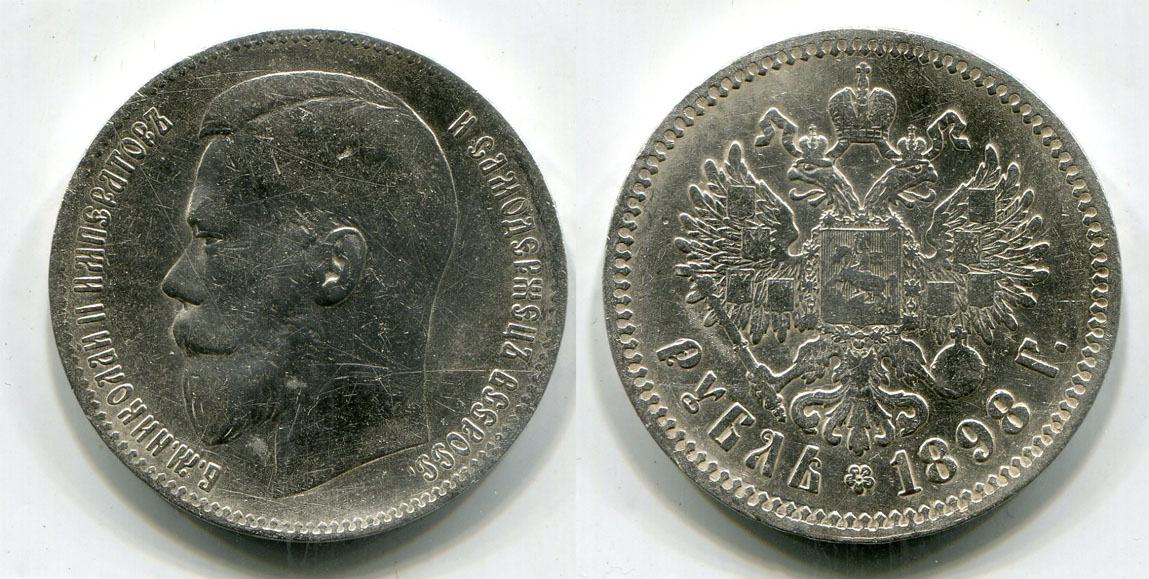 Монета серебряная 1 рубль 1898 года. Император Всероссийский Николай II