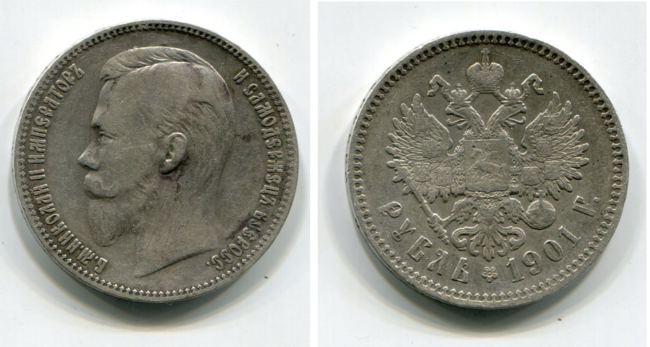 Монета серебряная 1 рубль 1901 года. Император Всероссийский Николай II