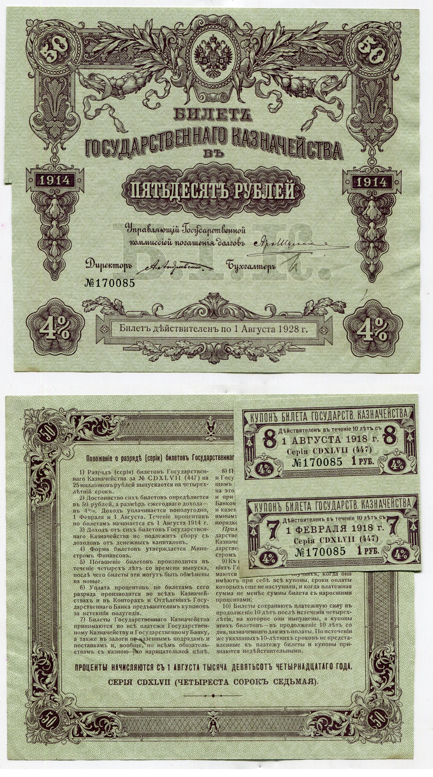 Билет государственного казначейства в 50 рублей 1914 года. Российская Империя