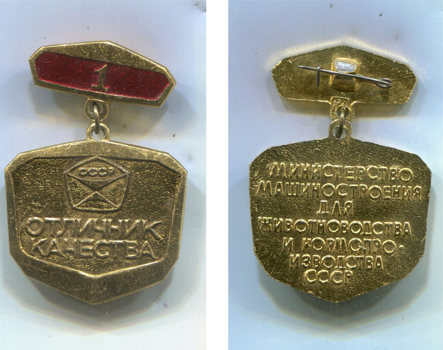 Знак СССР Отличник качества 1 степени. Министерство машиностроения и животноводства