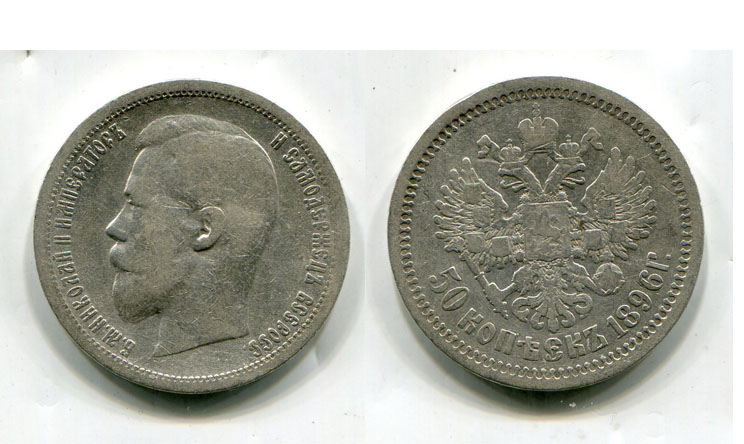 Монета серебряная 50 копеек 1896 года (*). Император Всероссийский Николай II