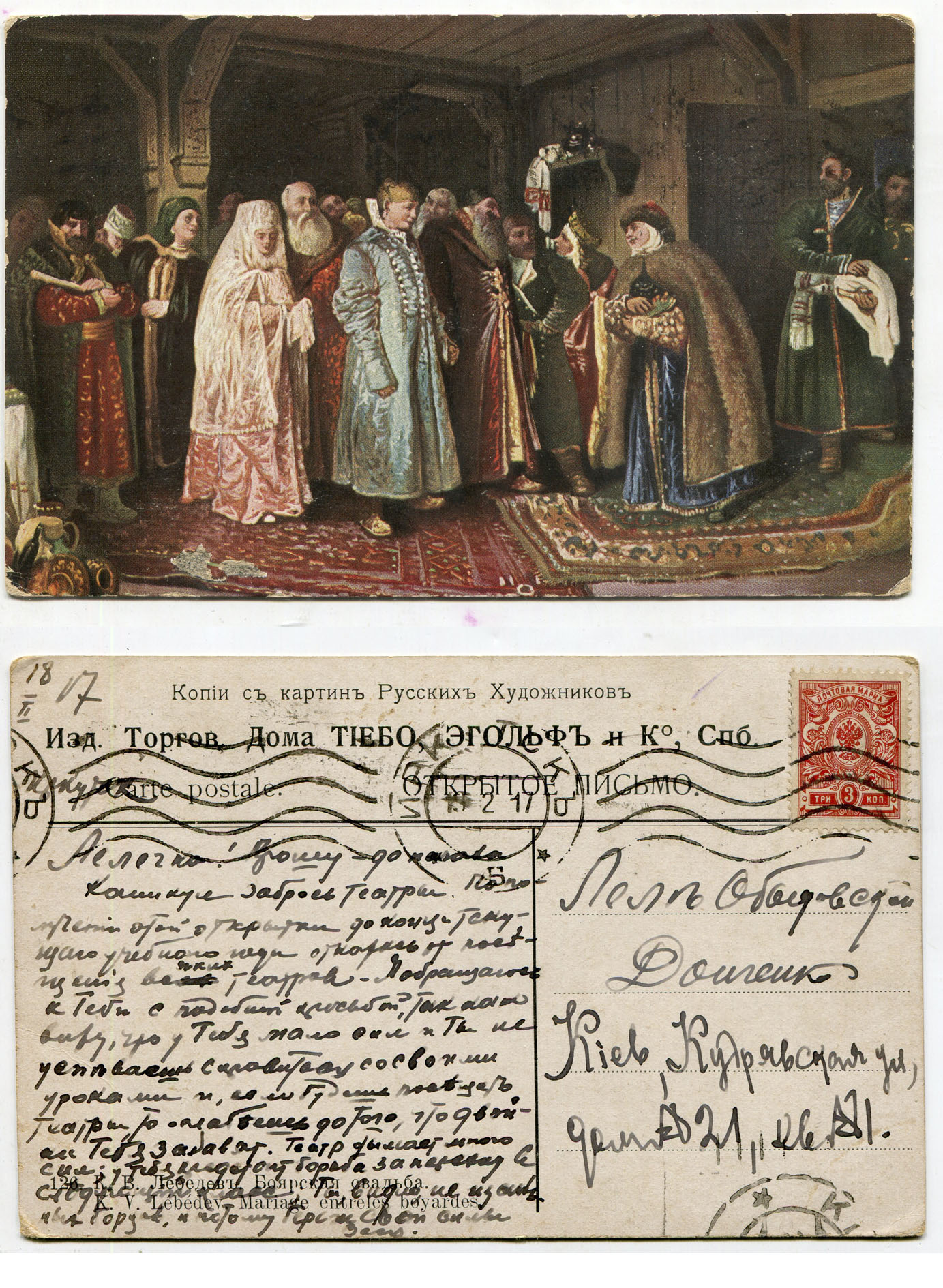Открытое письмо, К.В.Лебедев , Боярская свадьба. Издание Торгов. Дома ТIEБО, ЭГОЛЬФ и Ко