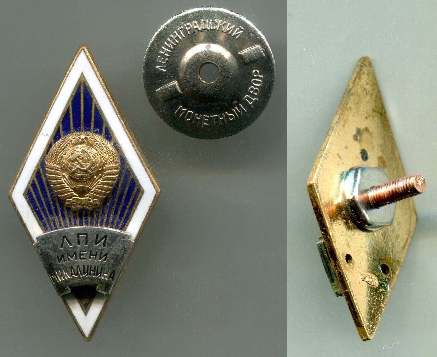 Академический знак выпускника Ленинградского политехнического института (ЛПИ)