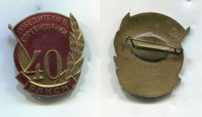 Знак ЦК ВЛКСМ " Победителю в соревновании в честь 40 летия комсомола", 1958 год