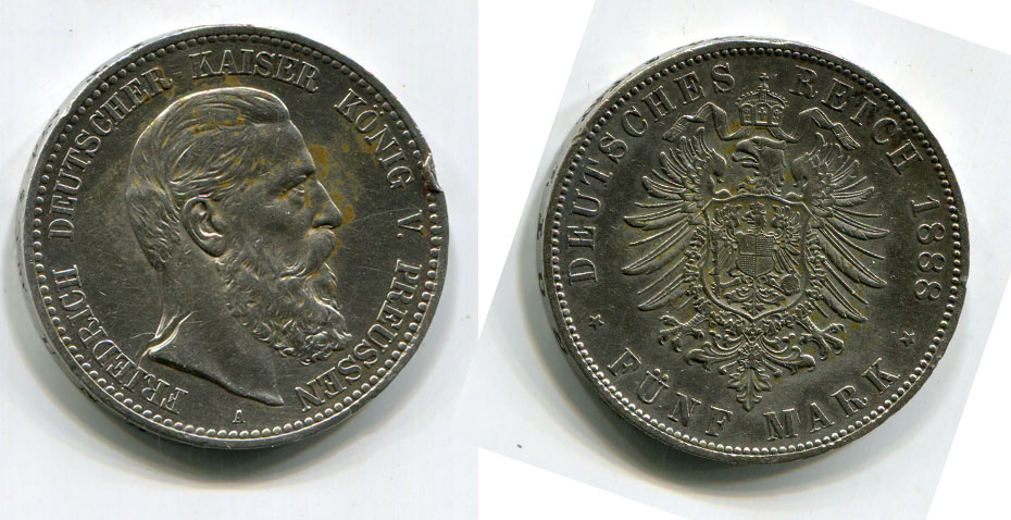 Монета серебро 5 марок 1888 Германия (Пруссия)