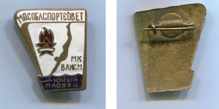 Знак Значок Спорт Юный пловец Мособлспортсовет МК ВЛКСМ 1960-е