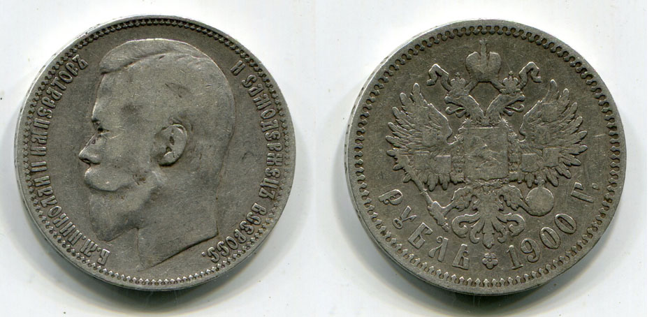 Монета серебро 1 рубль 1900 Император Всероссийский Николай II