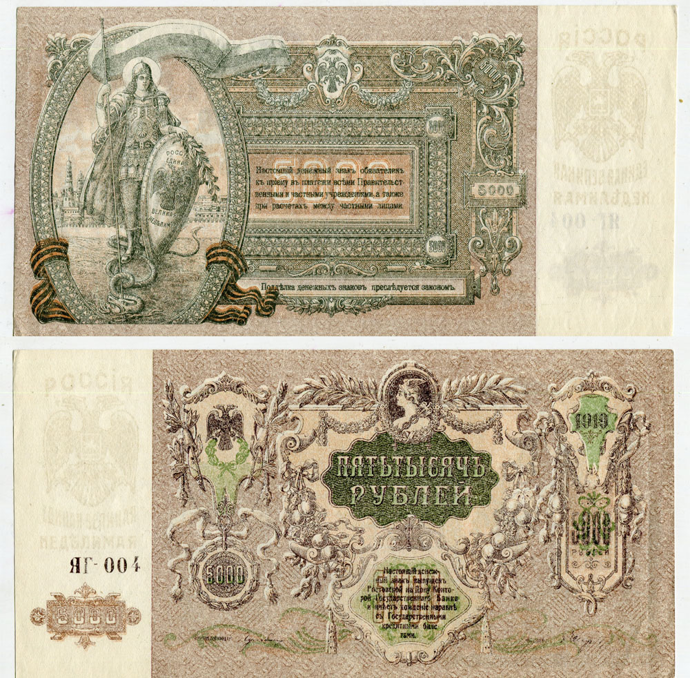 Денежный знак 5000 рублей 1919 года. Ростовская на Дону Контора Государственного банка