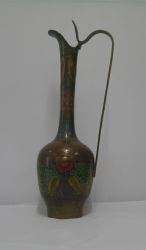 Ваза с ручкой латунь Индия ручная работа цветная эмаль