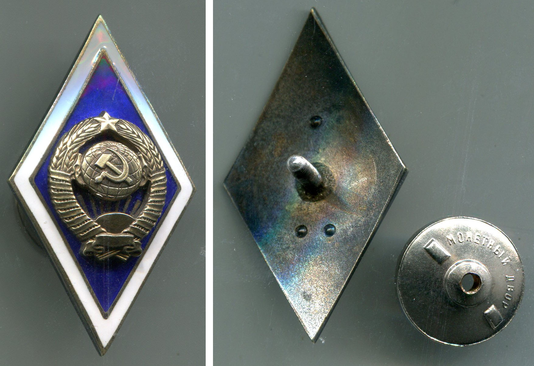 Серебряный нагрудный знак выпускника Государственного университета СССР (16 лент в гербе)