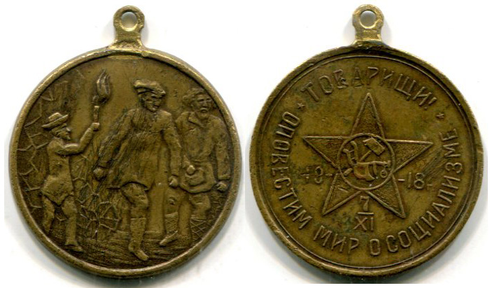 Памятный жетон посвященный годовщине октябрьской революции (1917-18 г.г.)