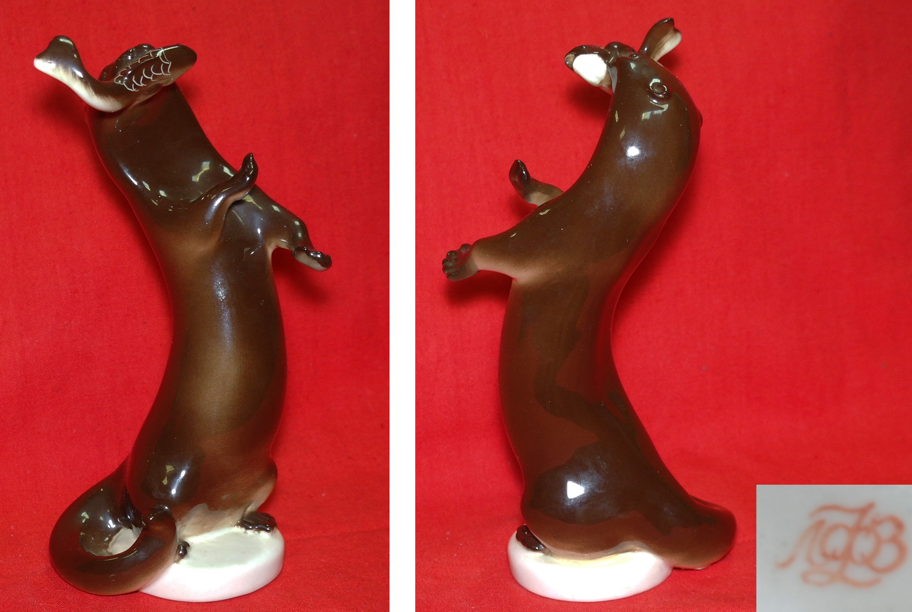 Анималистическая скульптура "Выдра с рыбой". Ленинградский фарфоровый завод