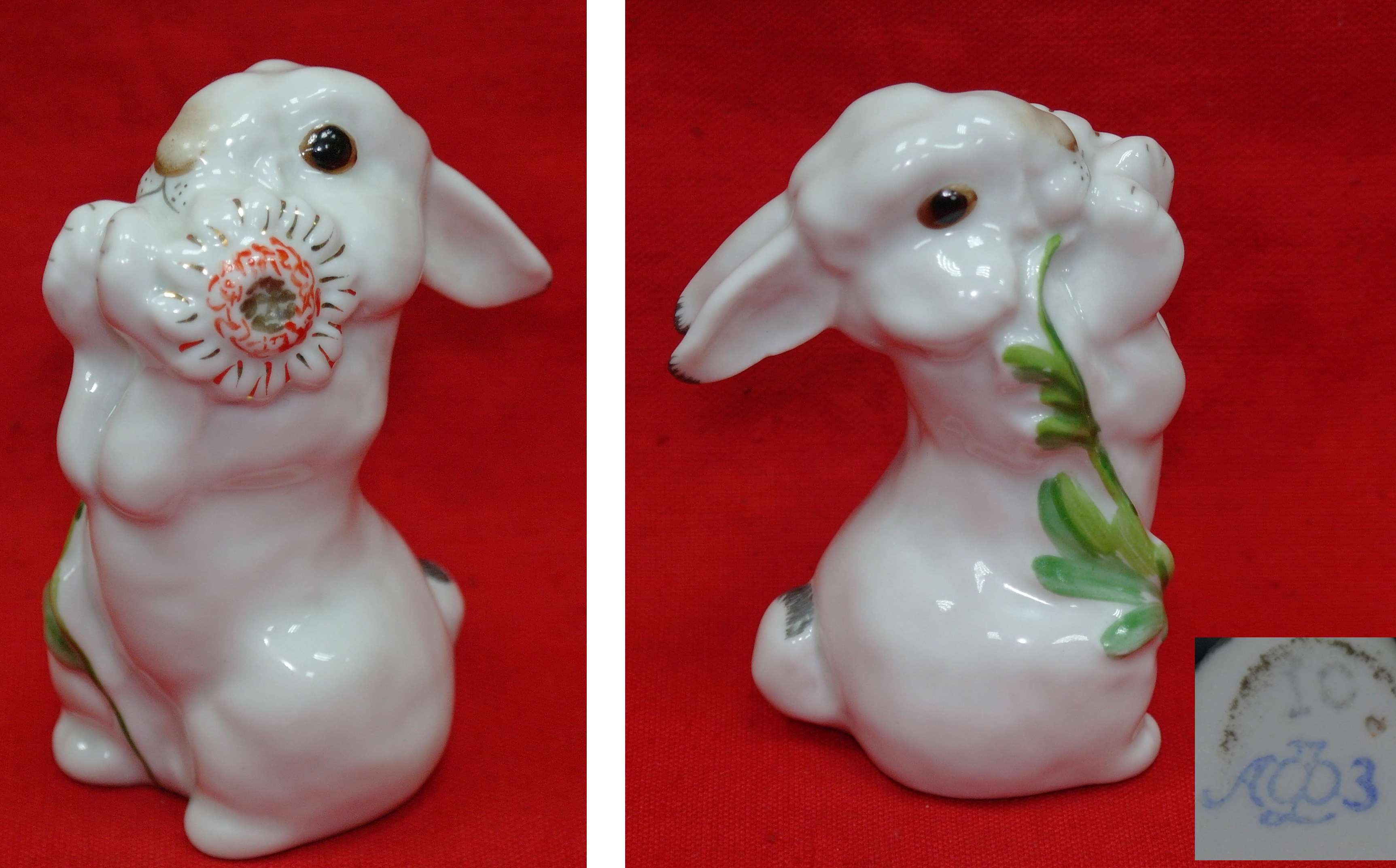 Статуэтка фарфор "Зайчик с цветком". Ломоносовский фарфоровый завод (ЛФЗ)
