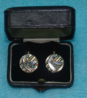 Антиквариат серьги с бирюзой и жемчугом.Российская Империя,золото 56 пробы