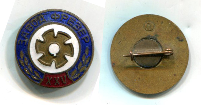 Значок "25 лет заводу Фрезер"